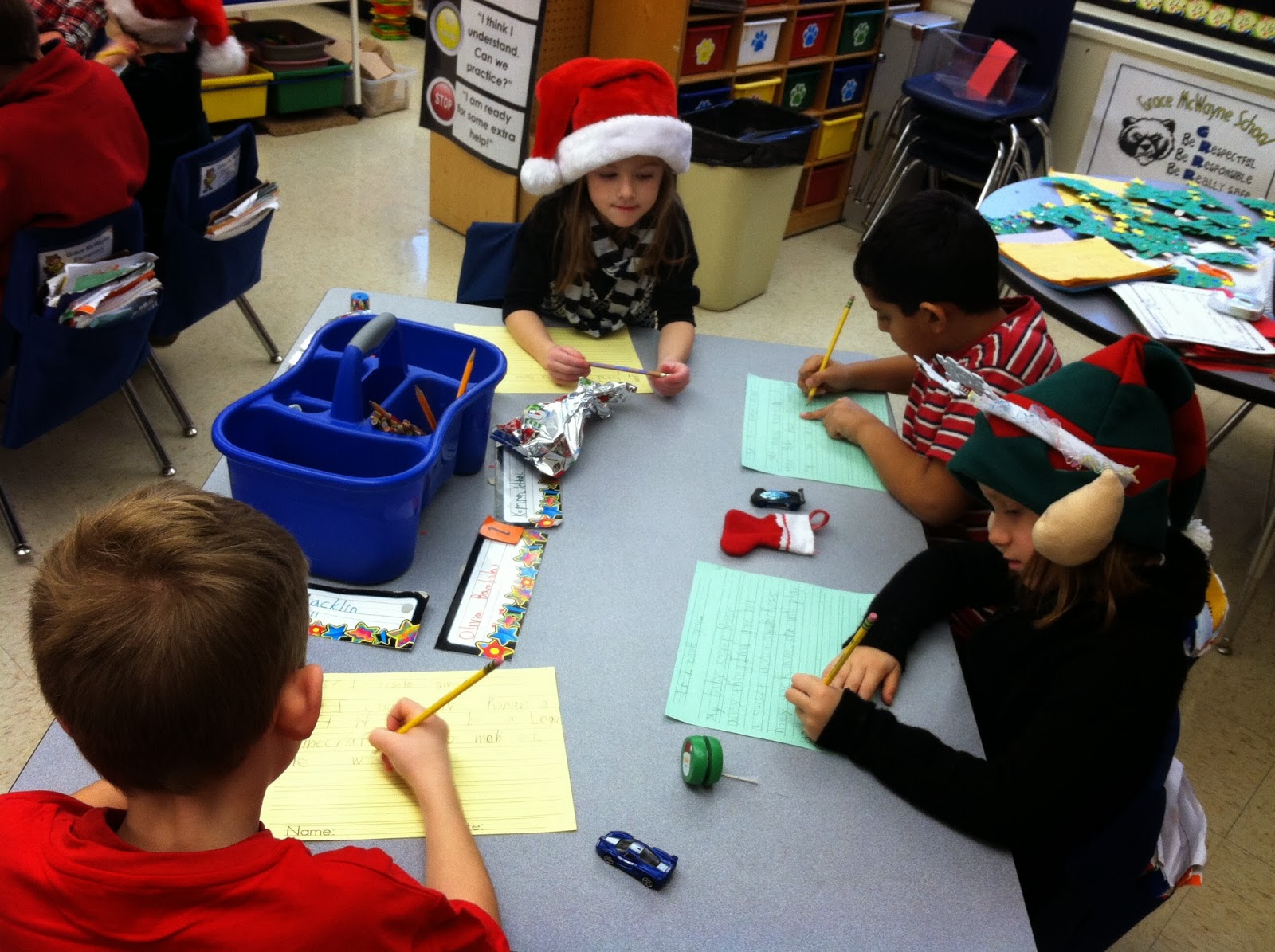 All Grace McWayne students have the opportunity to work collectively on grrrreat behavior in order to earn a CLAW from another teacher. When they are CLAWed (Caught Learning And Working) appropriately, we earn a bright orange award, and a portion is sent off to the office for a random weekly drawing as the Class of the Week. Our class has earned 21 of these CLAWs since August, which is far and away the highest total that one of my classes has achieved. Way to go, 1C!